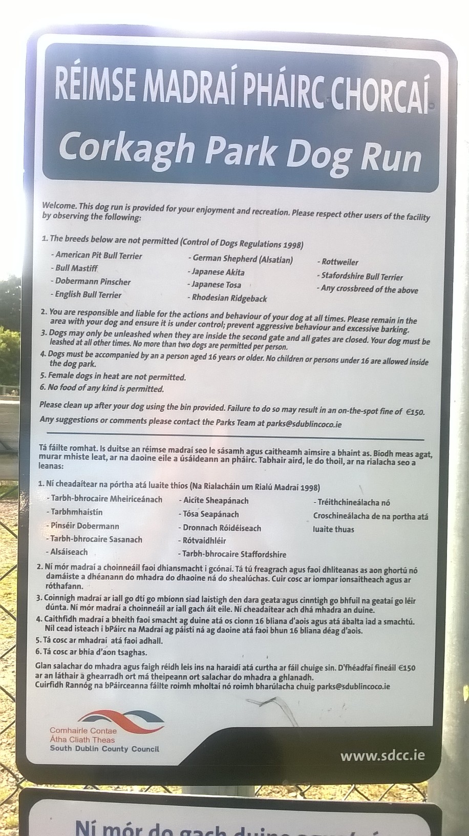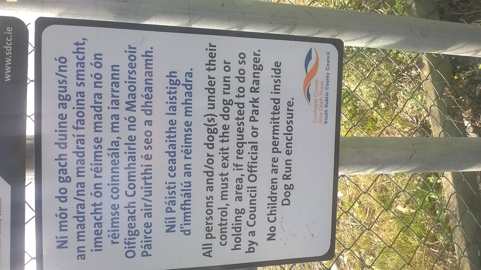 "That the Chief Executive arrange for the installation of a sign at the dog run in Tymon Park setting out the conditions of use."