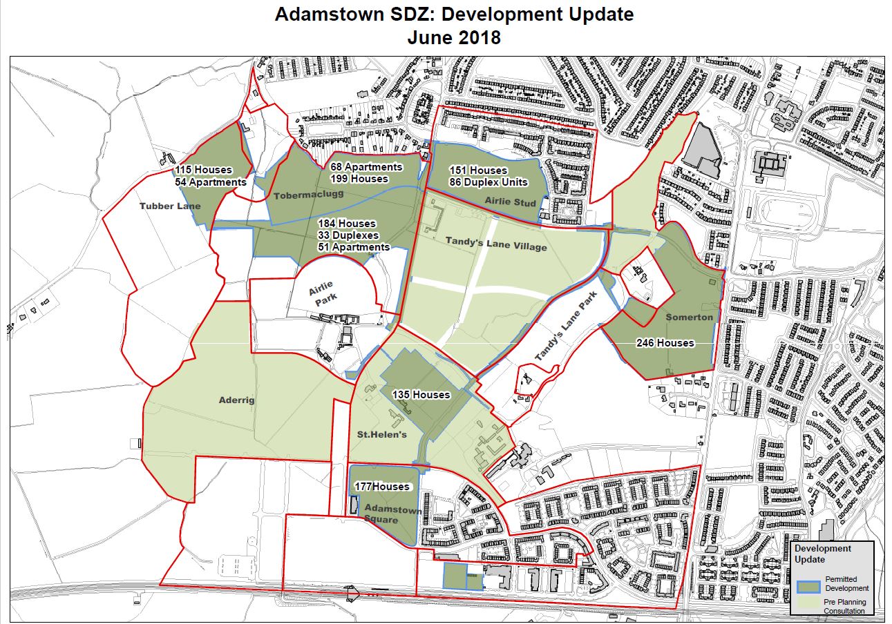 "That this Area Committee requests that the Chief Executive updates the elected representatives on the current status of planning applications within the SDZ and the completion of major roads and parks, including the link between Tandy's Lane and the railway station, as well as the opening date for the new road promised shortly linking The Paddocks entrance with Shackleton estate, which is required to alleviate rat running through internal roads in the estate such as The Paddocks Drive; and if a statement can be made on the matter."