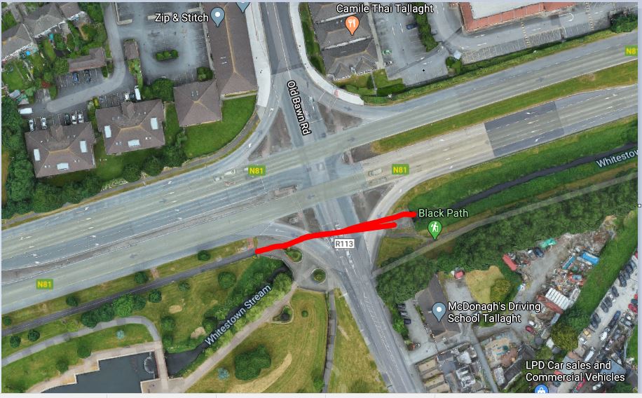 That this Area Committee calls for a costing re the provision of a cyclist and pedestrian bridge at the N81/Old Bawn Rd junction. This would be a continuation of the cycle path along the Whitestown Stream/ Watergate Park leading onto the black path in Dominic's, and would need to be designed with minimal impact on the environment leading toward Dominic's bridge. |