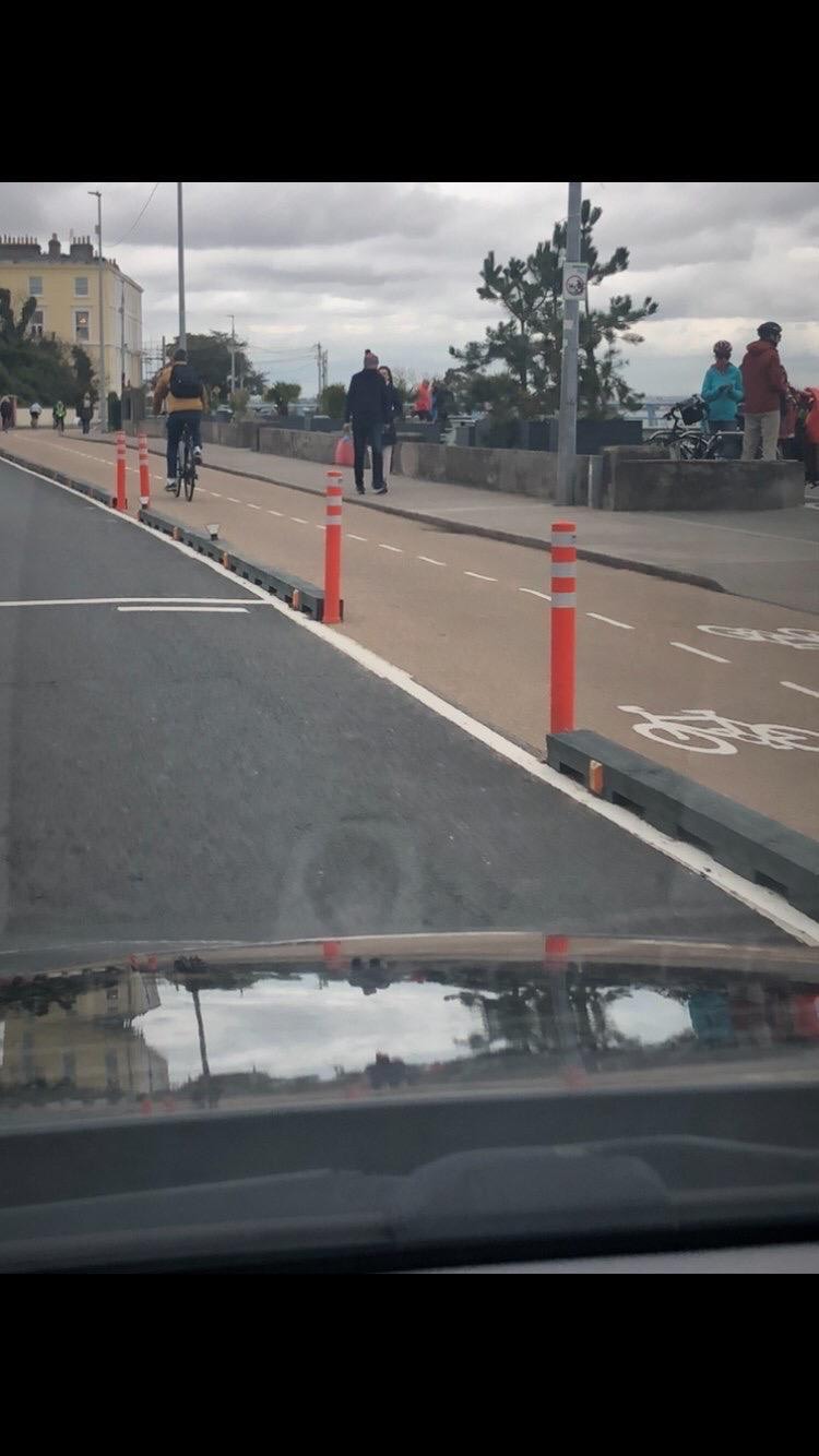 I am calling upon South Dublin County Council to consider and prioritise the installation of these traffic safety dividers when installing bicycle tracks. Dublin City Council and DLR have successfully implemented these barriers to ensure extra safety of cyclists and school children when travelling to school whilst travelling alongside motor vehicles. I think we can massively increase the usage of these tracks by school aged children and workers giving both of them and parents peace of mind that the tracks are safely and physically separated from the traffic. I have attached photos showing these in action in DCC.