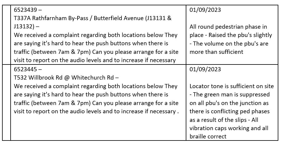 That this Council increases the audio levels of the pedestrian crossings in the Rathfarnham area, in particular at the junction of Main Street, Rathfarnham Village with Butterfield Avenue and at the junction of Rathfarnham Road and Willbrook Road, as they are very difficult to hear above the noise of traffic which is extremely hazardous and stressful for the blind or visually impaired.