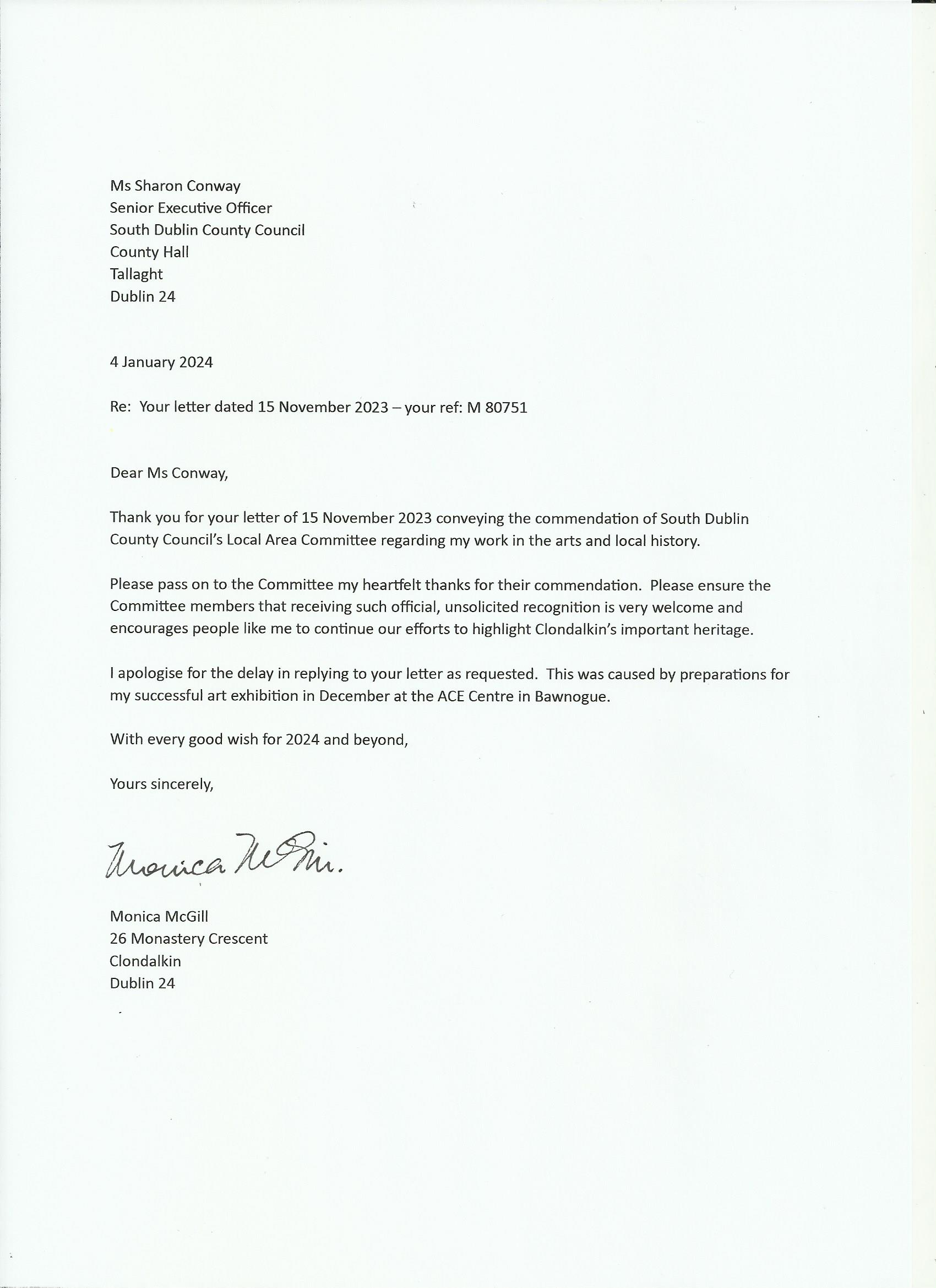 That this Area Committee asks Clondalkin Library to do a display that is a celebration of well known local women (display could include Katharine Tynan, Mary Kennedy, Hannah Tyrrell, Anne Frances Caldbeck) for this years Clondalkin Brigid's Festival.