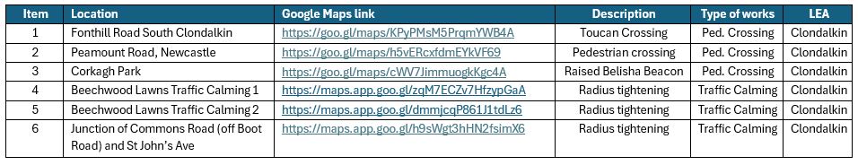 To ask the Chief Executive for a report on road safety works and traffic calming measures completed in 2023 for the LEA