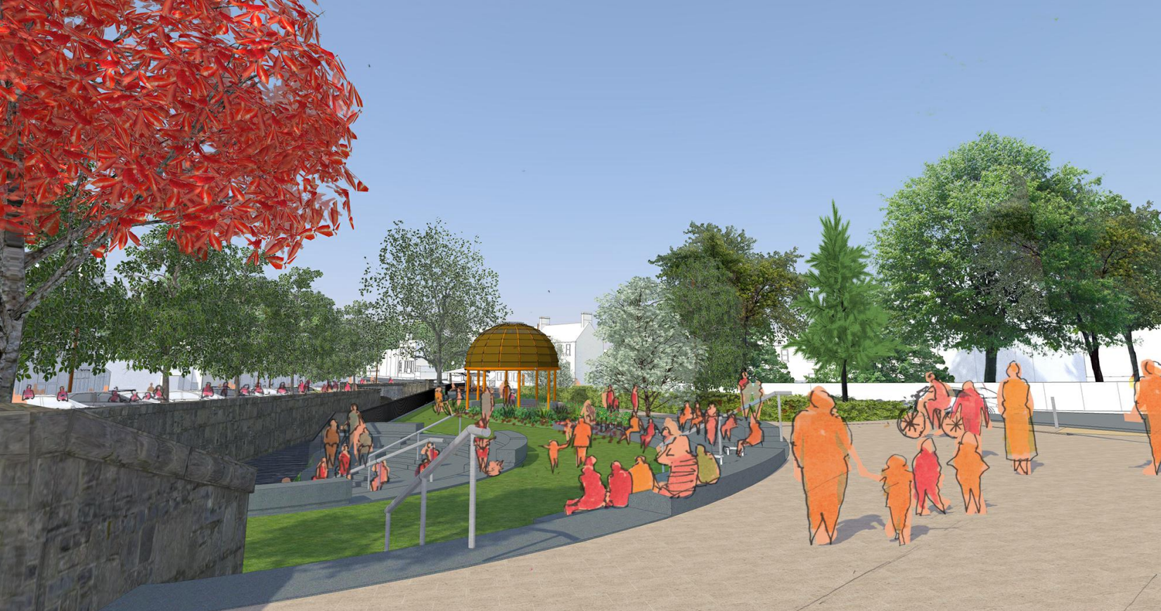 That the Chief Executive provides further clarity on additional measures to be provided in the Lucan village works, following the regrettable cutting down of trees not earmarked for this, commits to additional safety measures being put in place to prevent young children running out onto the busy road adjacent, or scooters entering at speed, and also ensures that all the stonework is retained and any removal for relocation of this historical masonry does not cause the adjacent road and path areas to subside, as it likely acts as a foundation framework; and if a statement can be made on the matter.