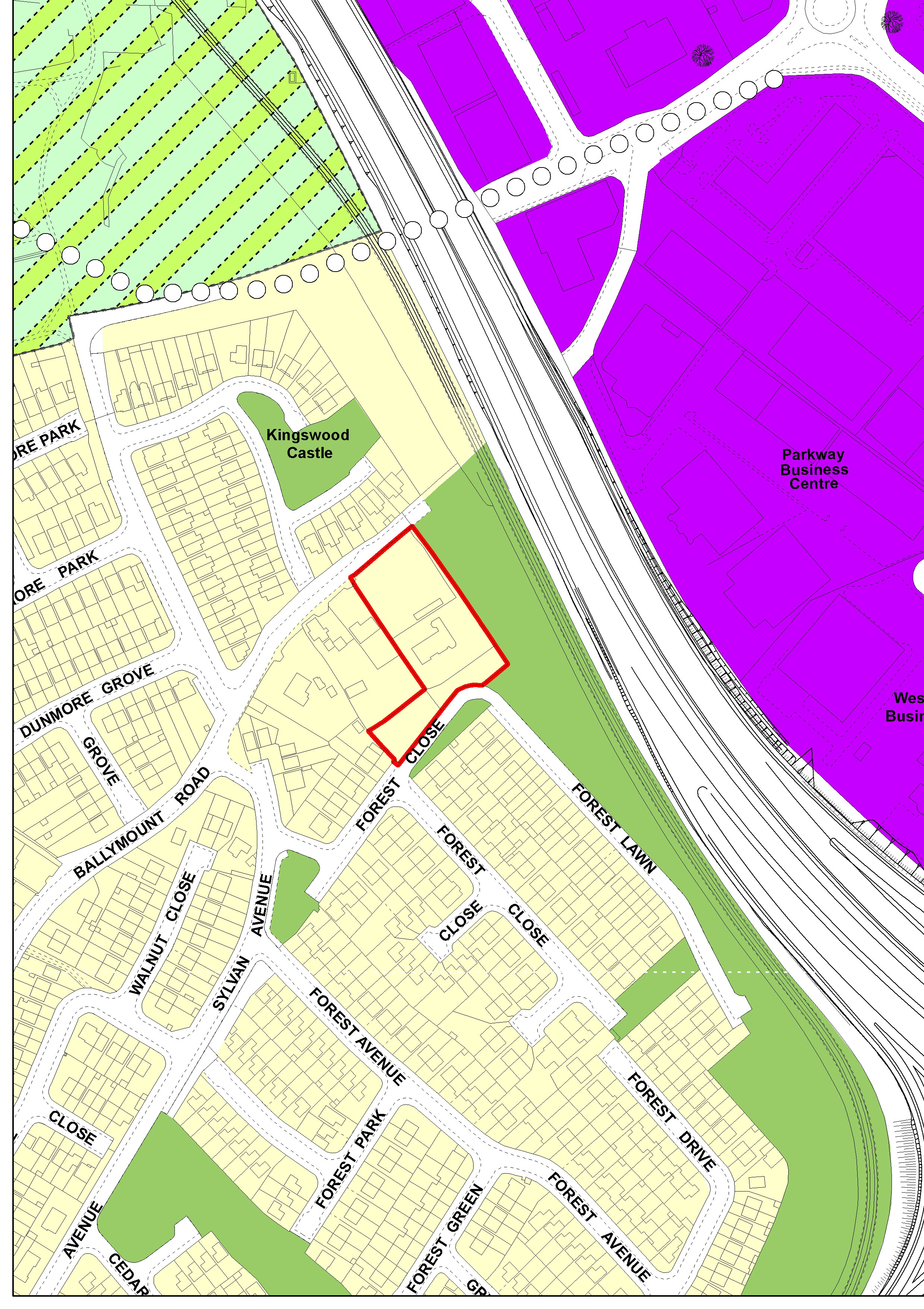To rezone open space between Abbeywood Court estate and the Outer Ring Road as indicated on attached map from Objective A to Objective F.