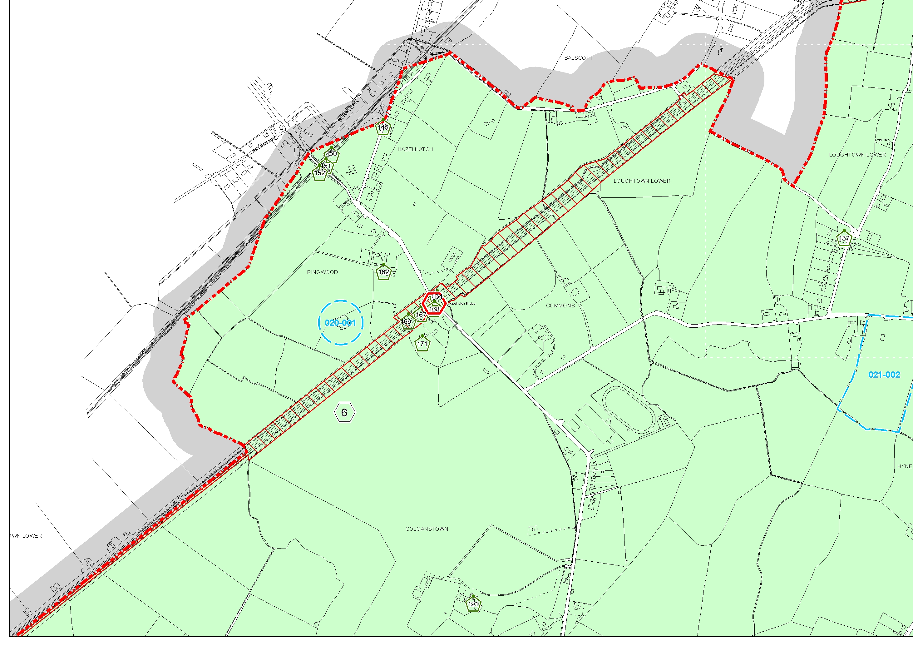 Zone Area to West of M50 at Knocklyon Road From 'F' to 'A'